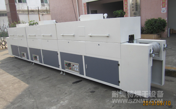 外形尺寸:總長7000*高1400*寬620mm;進料部分長500mm,出料部分長500mm;烘干部分長6000mm,分3段,每段2000mm;