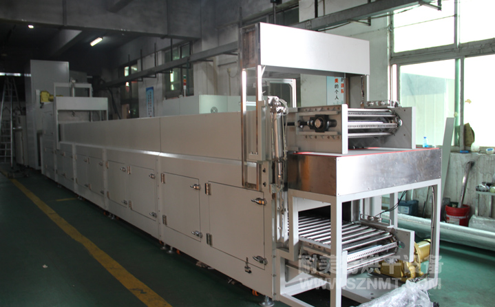 生產(chǎn)流程:1.治具到達上件工位→→→2.機械手取件放置→→→3.進烤爐升溫階段(速度溫度均可調(diào))→→→4.退火階段(速度溫度均可調(diào))→→→5.下風冷卻(2-5分鐘可調(diào))→→→6.治具到達下件工位→→→7.治具空走返回上件工位;
